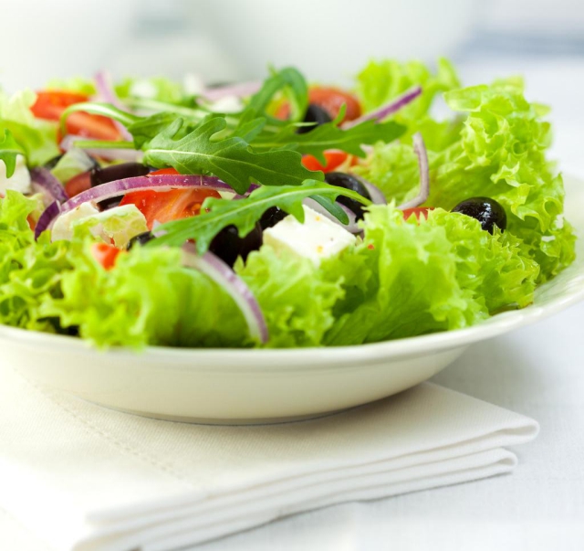 1.准备原料洗净,水菜、苦菊、黄瓜切片,洋 葱、红椒切条(蔬菜可以任 意选择,根据您的喜好)